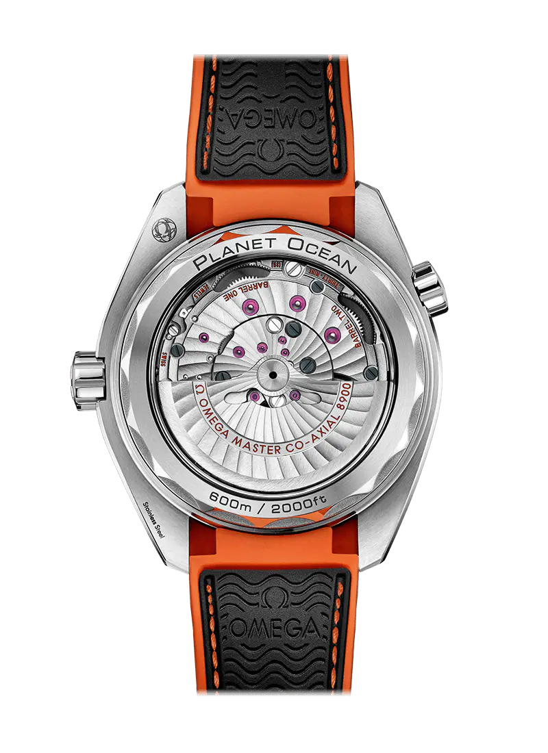 The OMEGA Seamaster Planet Ocean 600M Master Chronometer is water resistant to 600 metres / 2000 feet / 60 bar, and has a helium-escape valve. The OMEGA Master Chronometer calibre 8900 at the heart of this timepiece can be seen through the transparent caseback. To achieve Master Chronometer status, it has passed the 8 rigorous tests set by METAS (The Swiss Federal Institute of Metrology).